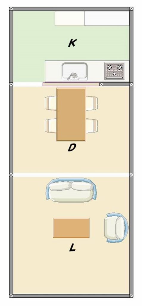 上であげた例では、すべてキッチンとリビングの間にダイニングが入ってきます。
